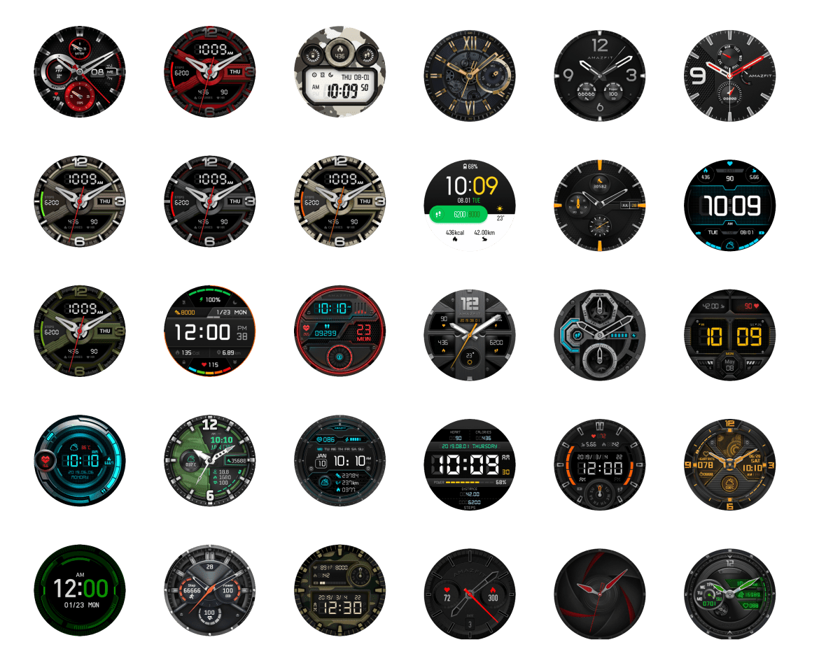 Дисплей T-Rex поддерживает функцию автояркости, пробуждение при повороте руки и режим Always On Display. Для последнего доступно всего два циферблата – аналоговый и цифровой, так что выбирать особо не из чего. Обычных циферблатов на момент написания статьи в стандартном приложении Amazfit имеется около 30 шт, еще больше вариантов можно найти в приложении AmazFaces.