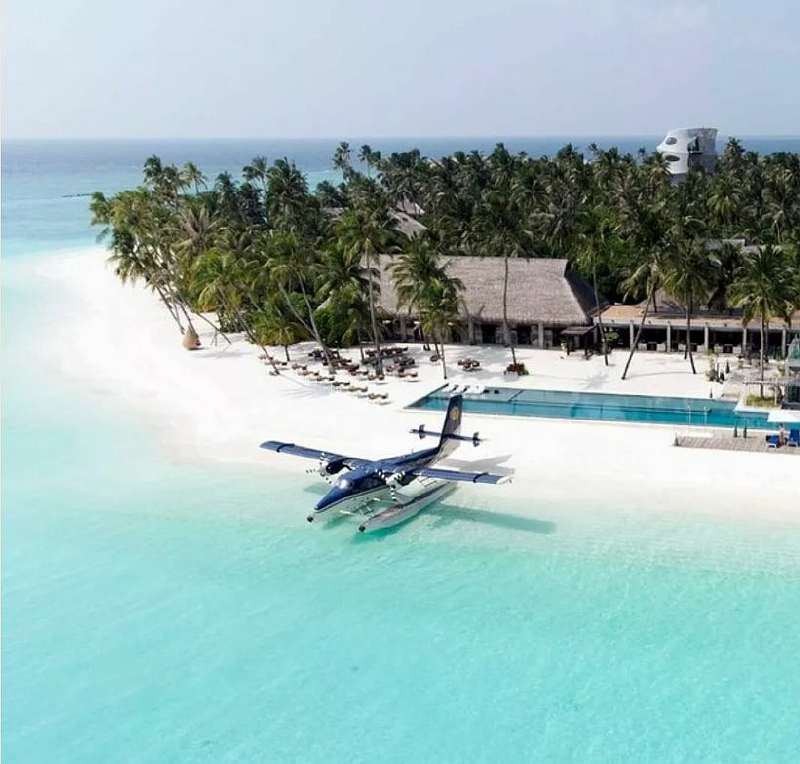 Попасть в него можно из столицы республики Мале, правда не обычным способом, а посредством частного гидросамолета, перелет на котором в оба конца встанет в $11 тысяч. Но в сравнении со стоимостью номера в сутки это мелочи – цена в самом дорогом отеле в высокий сезон доходит до космических 3.145 миллионов рублей в сутки!
