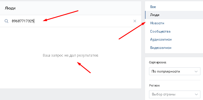 Если в FaceBook достаточно начать вводить номер телефона в строку поиска людей, то вот в случае с ВКонтакте всё несколько сложнее. Вы можете открыть поиск, выбрать вкладку поиска Люди и ввести номер телефона, однако в большинстве случаев это не даст результатов. Он сработает лишь в том случае, если телефон указан в контактной информации профиля.