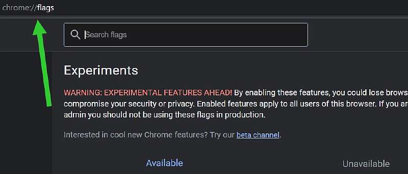 - Введите в адресную строку браузера chrome://flags и нажмите Enter;