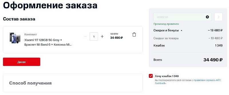 Обнаружили необъяснимо выгодную акцию в официальном интернет-магазине МТС. Красные отдают флагманский смартфон Xiaomi 11T в комплекте с гаджетами бренда за 35 990 рублей. Дополнительно 1349 рублей возвращают кэшбеком на любой номер оператора, следовательно за 34 490 рублей можно получить: