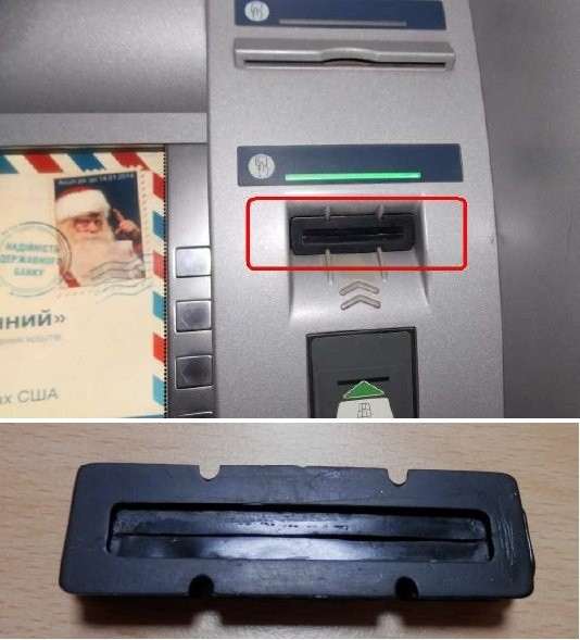 Одна из самых ходовых преступных схем — установка на банкомат скиммера. Это миниатюрное устройство для считывания информации с магнитной полосы банковских карт. Обычно их монтируют одновременно с накладками на клавиатуру, запоминающими PIN-код карты, который вводит пользователь. Таким образом, мошенники получают все необходимые данные для создания дубликатов карт, с помощью которых потом выводятся наличные с банковского счета.