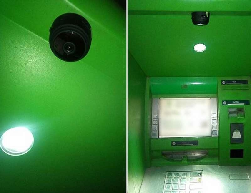 Еще один способ развода не требующий личного присутствия мошенника — камеры. Обычно монтируется несколько камер над картоприемником и клавиатурой, чтобы заснять данные пластика и вводимый PIN-код.