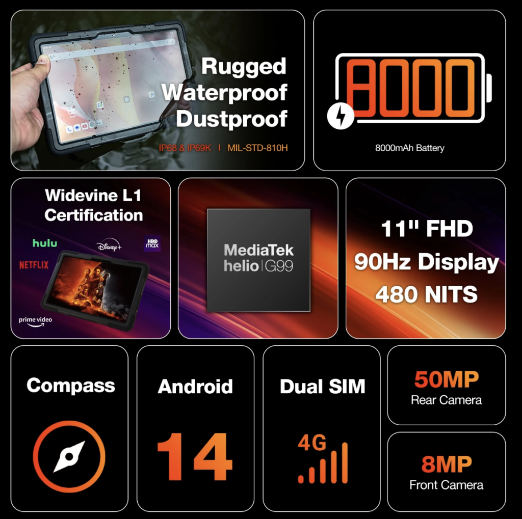 Планшет оснащен 11-дюймовым дисплеем FHD с яркостью 480 нит, обеспечивающим четкость изображения даже при ярком солнечном свете. Это благословение для работников на открытом воздухе и путешественников, которые обычно сталкиваются с проблемами видимости экрана. Частота обновления 90 Гц обеспечивает быстрый скроллинг и высокочувствительное емкостное касание, последнее крайне важно для быстрого принятия решений на работе или в движении.