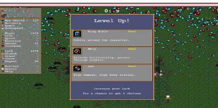 Первое оружие, которое должен получить игрок, то, что наносит урон по площади, например, Библия Короля, Чеснок или Кнут.