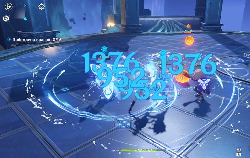 - Анемо + Крио / Электро / Гидро / Пиро = Вихрь (наносит дополнительные повреждения стихией и накладывает эффект по области);
