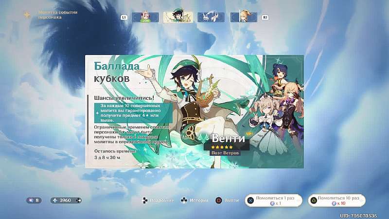 Как видите, персонажи Фишль и Венти очень юзабельные и гарантированно впишутся практически в любой билд. Так что, старайтесь использовать молитвы, в которых есть шанс их выпадения.