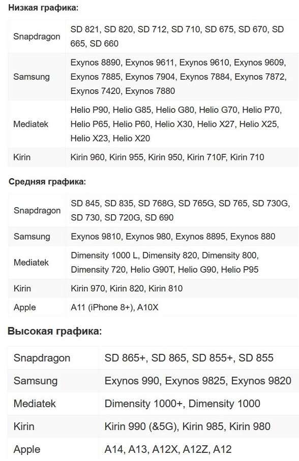 - Процессор: Qualcomm Snapdragon 845, Kirin 810 и выше.