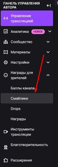 Чтобы добавить смайлик на канал, нужно открыть «Панель управления автора» и в разделе «Награды для зрителей» выбрать «Смайлики».