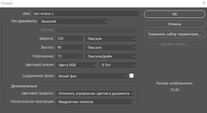 - Открываем ее в Photoshop и создаем новый файл. Вписываем в разрешении 320×80 пикселей. Подгоняем нужный фрагмент оригинального изображения под оставшееся пространство, либо же просто сжимаем картинку.