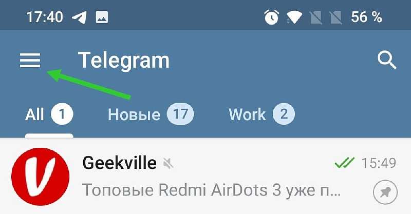 - Нажимаем на иконку с тремя горизонтальными полосками в левом верхнем углу.