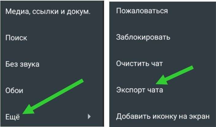 - Выберите «Еще», а затем «Экспорт чата».