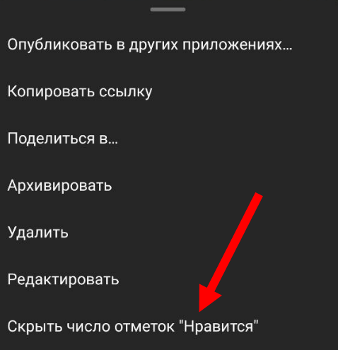 - В появившемся меню выберите «Скрыть число отметок нравится».