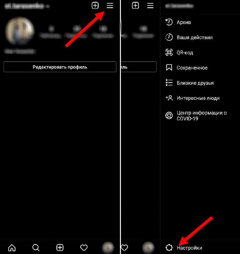 - Зайдите в «Настройки». Для этого кликните по трем горизонтальным полоскам в правом верхнем углу и выберите соответствующий пункт внизу экрана.