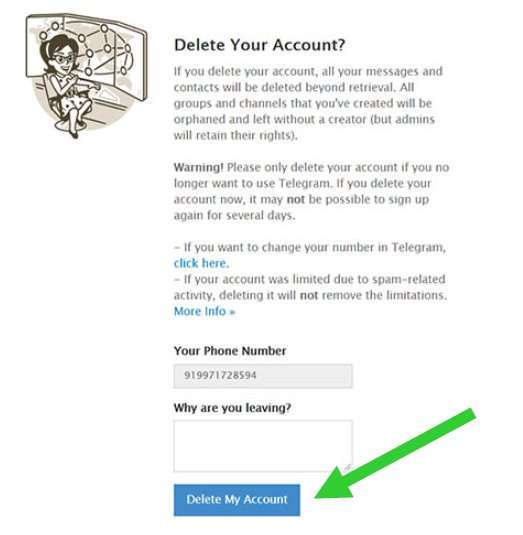 - С серверов Telegram пропадут все переписки, группы и контакты, связанные с вашим профилем. Вернуть их не получится, даже пересоздав аккаунт, используя старый номер.