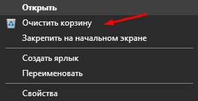 - Кликните правой кнопкой мыши по корзине и нажмите «Очистить корзину».