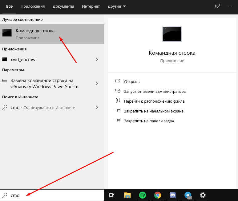 - В поисковой строке наберите cmd и запустите программу «Командная строка».