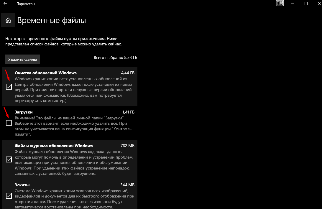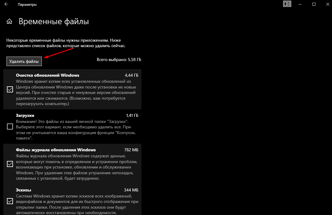 - Как только отметите все нужное — жмите «Удалить файлы».