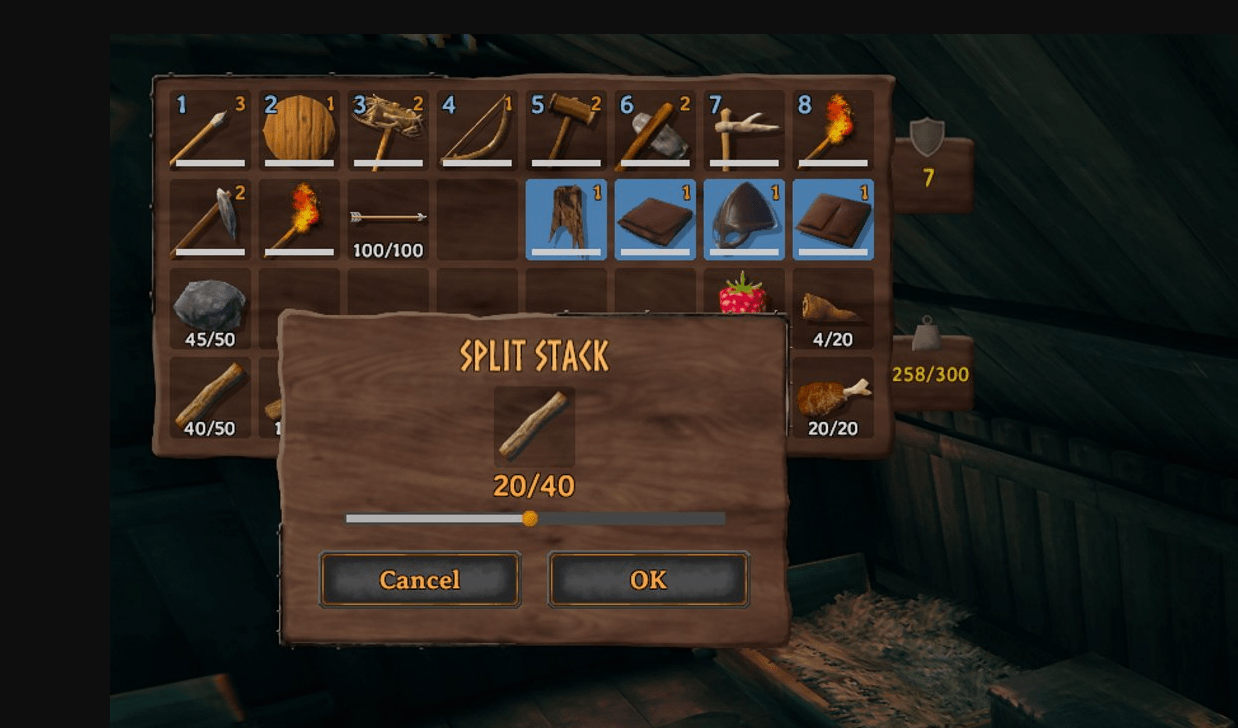 Через клик с зажатым Shift можно разделить стак материала. Полезно, если нужно отдать какое-то количество материла товарищу или просто выкинуть лишнее.