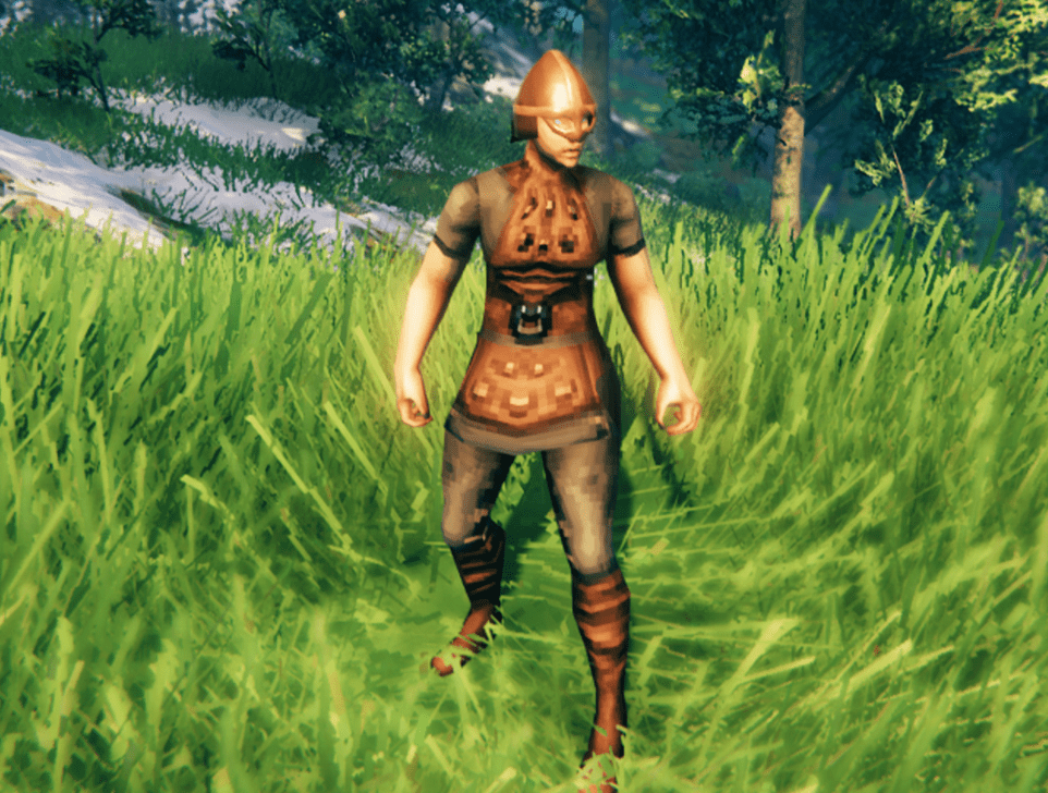 Кожаная броня. Первая стоящая броня, которые вы получите, сняв свои тряпочные лохмотья. На полный комплект (туника, штаны, шлем, накидка) понадобятся: 22 шкуры оленя и 5 фрагментов кости. Дает 7 единиц брони.