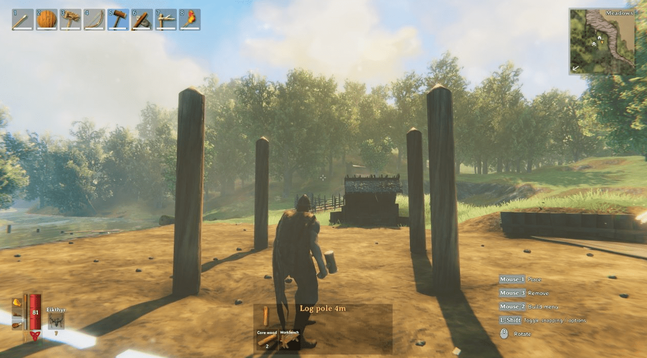 Залог устойчивого дома – хороший фундамент. В отличие от многих игр, где дом представляет собой четыре стены и крышку, в Valheim дела обстоят немного иначе. Чтобы он был надежнее, нужно использовать специальные сваи из сердцевины древесины (добывается она в Черном лесу), а затем заполнять пространство между ними так, как вашей душе будет угодно.