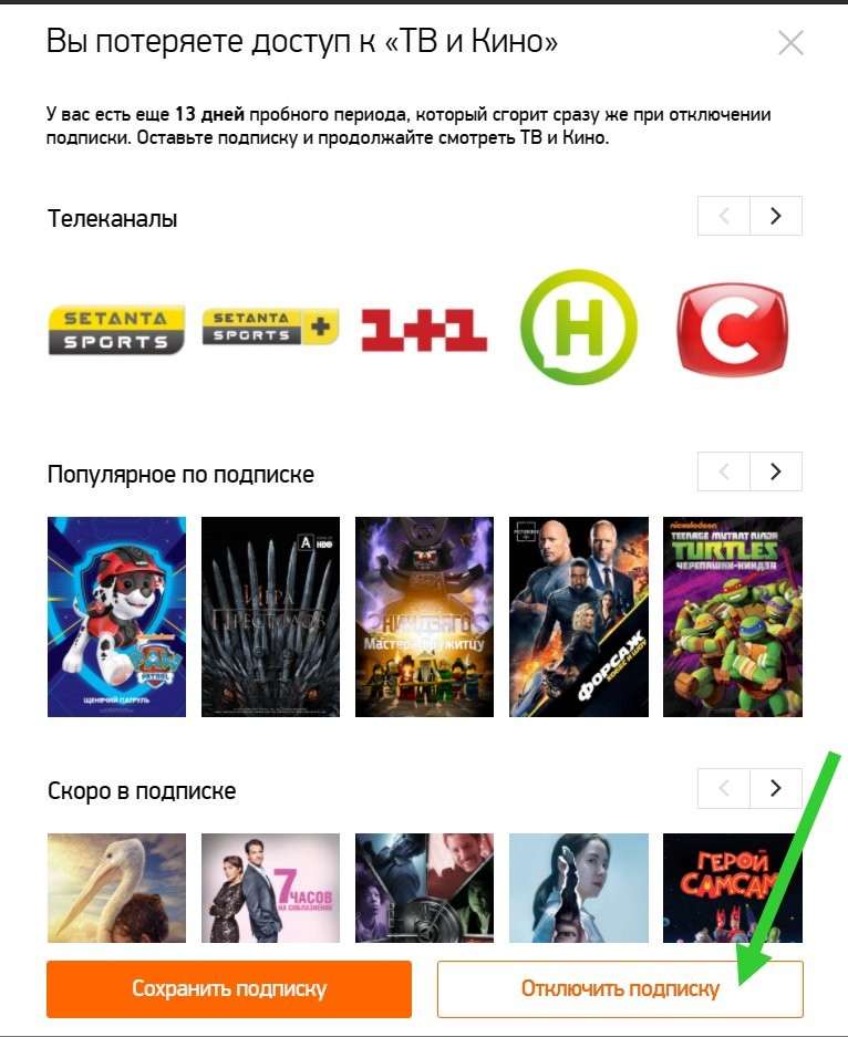Как отключить подписку на сайте Megogo