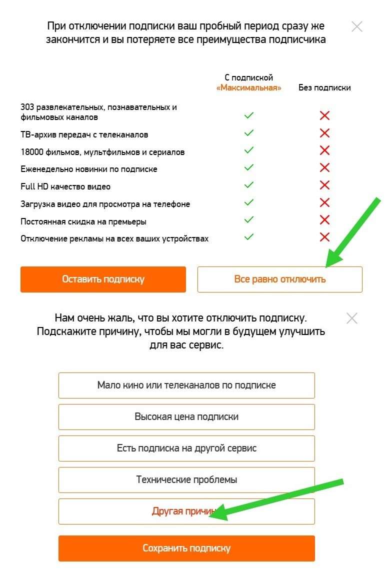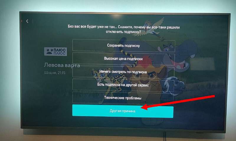 В окне, где просят указать причину отмены подписки, можно выбрать абсолютно любой вариант, кроме нижнего.
