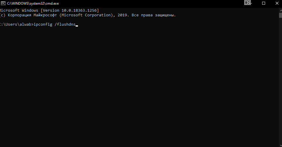 - Вставьте команду ipconfig /flushdns и нажмите Enter. DNS будут сброшены до стандартных.