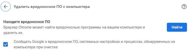 Также можно проверить систему антивирусом и найти вредоносные приложения через Chrome. Для этого вставьте chrome://settings/cleanup в адресную строку, и кликните «Найти» в появившемся меню.