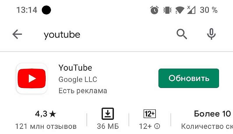 Если Ютуб не работает на телефоне, вероятно, вы используете старую версию фирменного приложения. В таких случаях обновление устраняет большинство проблем.