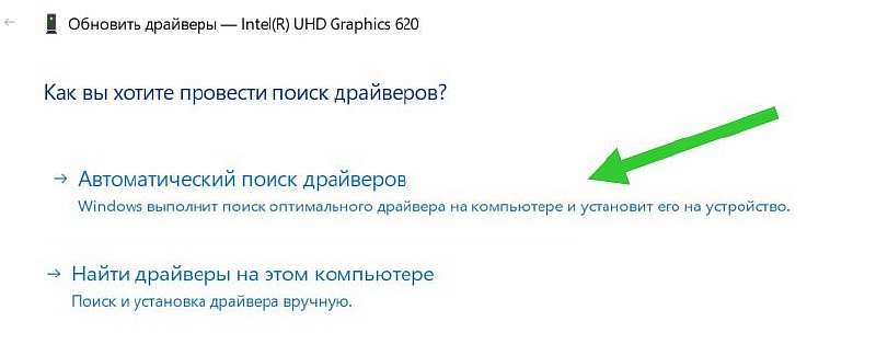 - Из двух предложенных вариантов нажмите «Автоматический поиск обновленных драйверов».