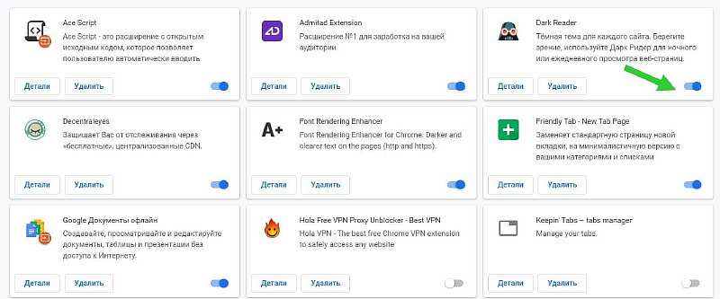 - Затем вернитесь в обычное окно браузера, откройте меню со всеми установленными расширениями и поочередно их отключайте, чтобы найти источник проблемы. Скорее всего это блокировщики рекламы или утилиты, направленные на модификацию сервиса.