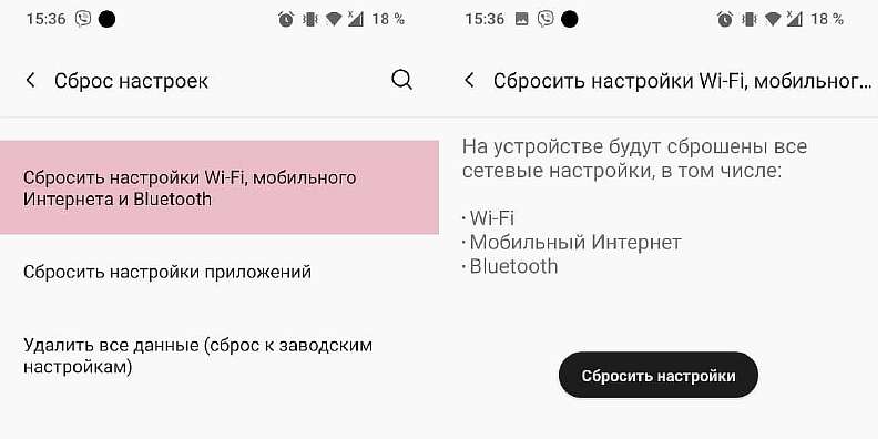 - На Android зайдите в «Настройки» и ищите пункт «Опции сброса». Нам нужен раздел «Сбросить Wi-Fi, мобильные данные и Bluetooth». Откройте его и нажмите «Сбросить настройки»;