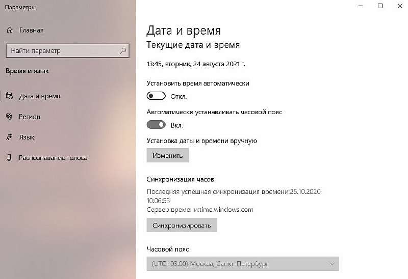 Обновите дату, время и регион