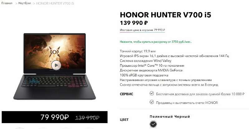 Судя по всему, бренд решил загладить вину перед своими фанатами. С 6 до 11 июля в официальном интернет-магазине HONOR действует распродажа, в рамках которой игровой ноутбук Hunter V700 можно забрать с внушительной скидкой 60 000 рублей – за 79 990 или 99 990 деревянных.