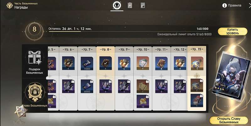 Боевой пропуск. По аналогии со многими играми в Хонкае есть бесплатная и платная версии пропуска. Отличаются они наградами, которые выдаются за выполнение заданий пропуска и повышение его уровня. Хотите более ценные награды – донатьте и покупайте платную версию, но делать это не обязательно.