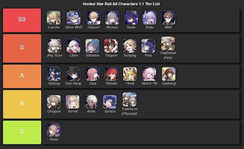Каждый персонаж в Хонкае по-своему хорош, но всё-таки некоторые чары сильнее других. Наглядное положение дел представлено на изображении ниже: