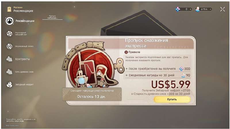Пропуск снабжения экспресса – самый выгодный донат. Купив его, вы будете получать по 90 звездного нефрита каждый день в течение месяца , а также 300 сущностей древних снов единоразово сразу после покупки.
