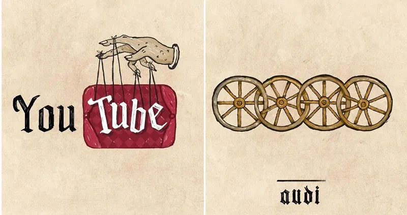 Илья Денисов – отечественный графический дизайнер, решивший пофантазировать на тему того, как бы самые знаменитые лого выглядели в средневековье. Помимо занятной техники иллюстрации в глаза бросается глубокая работа автора над содержательной стороной: какие именно четыре кольца использовала бы Ауди или каким контентом бы развлекал нас Ютуб несколько столетий назад? Листайте ниже и все увидите.