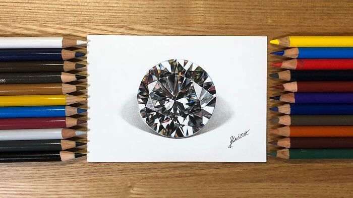 Японский художник рисует самые разные объекты: еду, ключи, баночки с газировкой и даже драгоценные камни. Все они получаются настолько реалистичными и похожими на настоящие веши, что не видя поэтапный процесс создания рисунка легко заподозрить подставу.