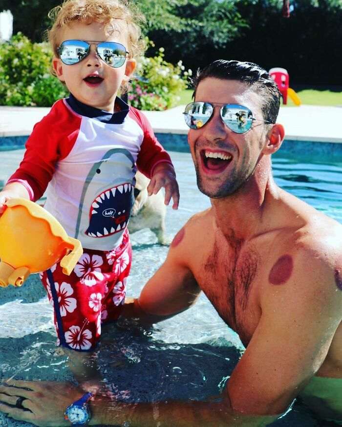 Легендарный пловец Майкл Фелпс после процедуры лечения медицинскими банками