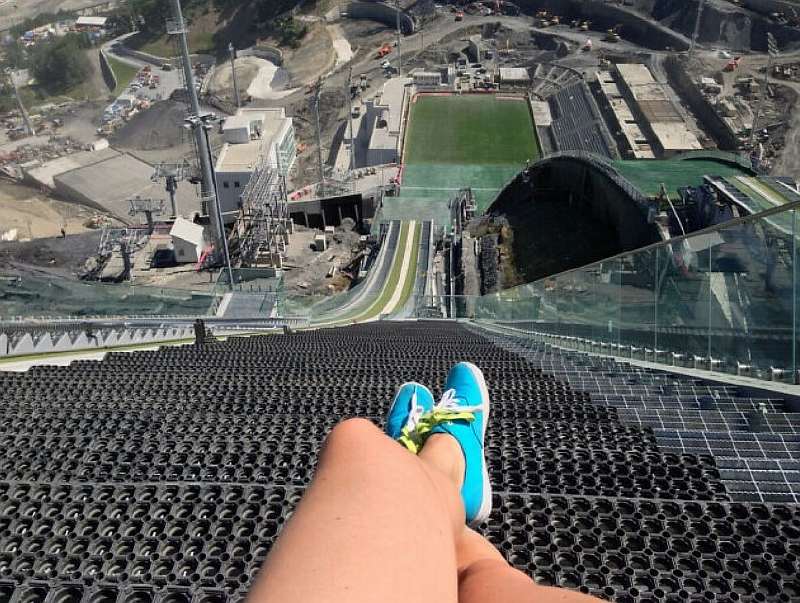 Вот такой вид предстаёт перед глазами прыгунов на лыжах с трамплина