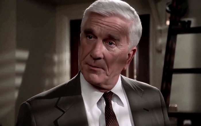 Лесли Нильсен в роли Фрэнка Дребина, «Голый пистолет»