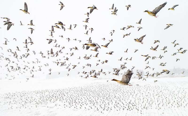Тысячи розоногих казарок устраиваются на ночлег в центральной Норвегии по пути к Шпицбергену. Фотография года