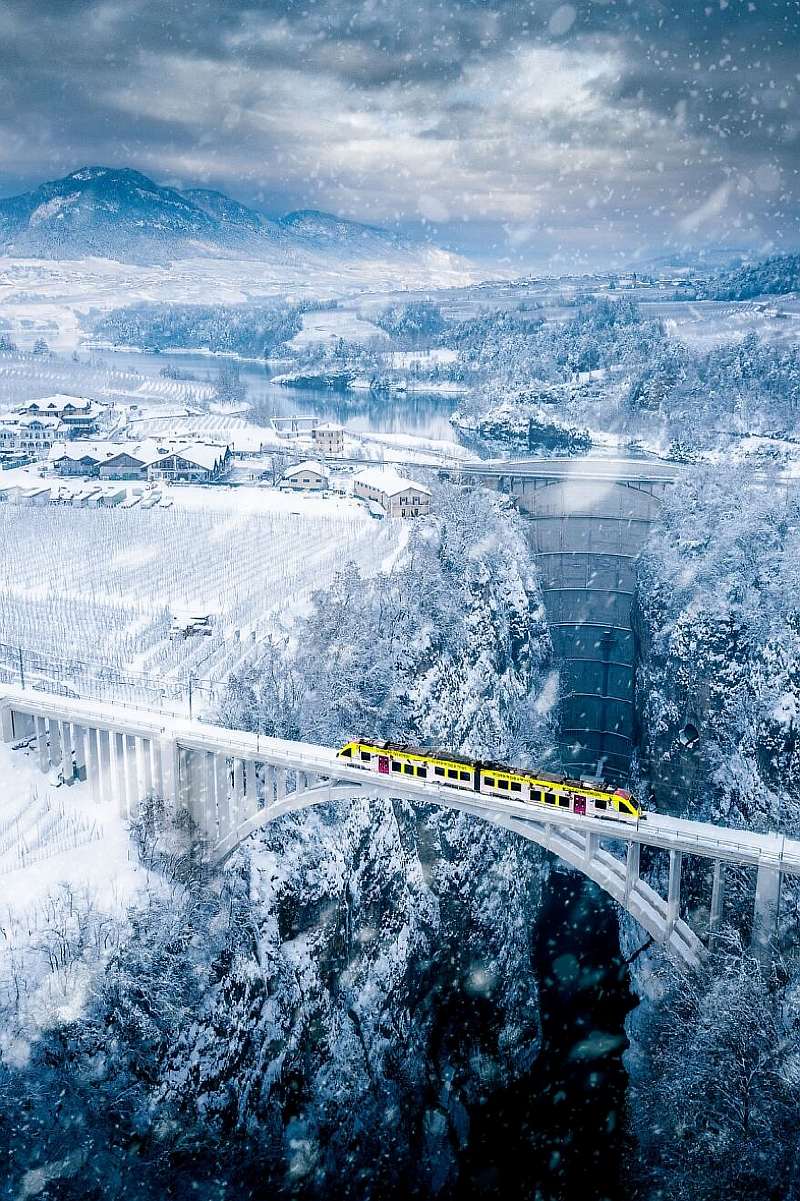 Vaccanonesa – это небольшой поезд в Трентино, Италия. Во время своего маршрута он делает захватывающий проход над ущельем высотой более 150 метров.