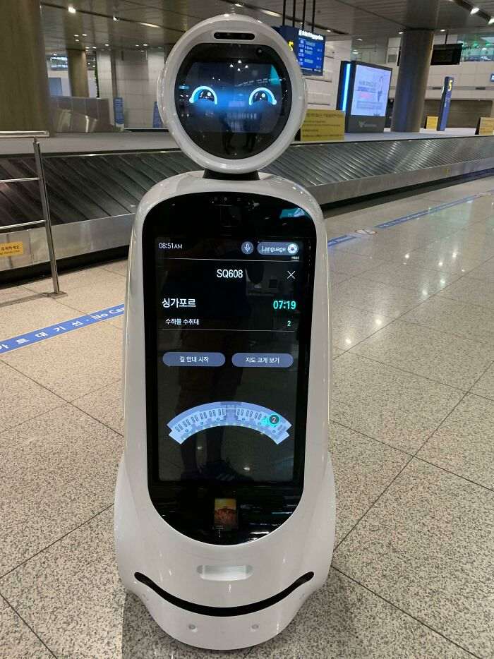 В аэропорту Инчхон в Сеуле, можно встретить роботов, которые ездят туда-сюда и показывают информацию о рейсах