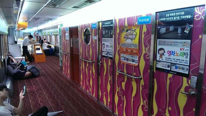 Чтобы пассажиры могли скоротать время, в поездах ставят караоке-будки на одного человека