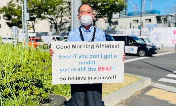 Этот мужчина каждый день стоял возле Олимпийской деревни, чтобы подбадривать едущих на соревнования атлетов