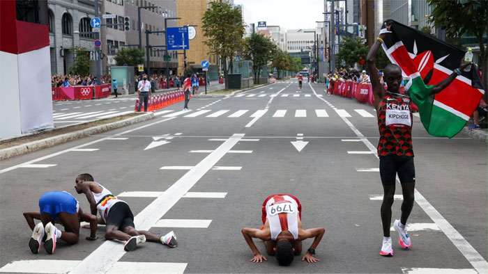Американский и ботсванский бегуны Исаии Джевет и Найджел Амос упали во время забега, в котором считались фаворитами