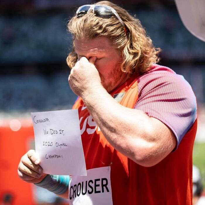 Райан Краузер передал своему дедушке сообщение после победы в толкании ядра: «Дедушка, мы это сделали, Олимпиский чемпион 2020»